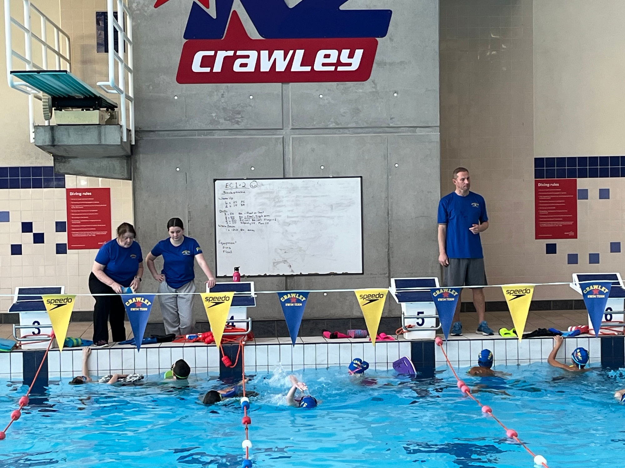 Crawley Swimming Club competitive squads swim at K2 in Crawley on various days of the week. Depending on the squad to which a swimmer qualifies they will be required to participate in 2 to 7 sessions per week. As these are competitive swim squads, a swimmer is expected to compete regularly in competitions as directed by the coach.
